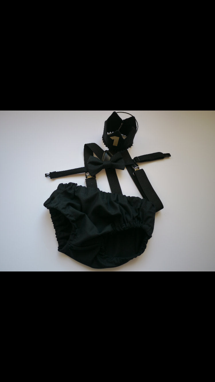 Cake Smash Boy First Birthday super soft black cotton Diaper Cover,black Suspenders,black bow tie, Birthday Photoshoot