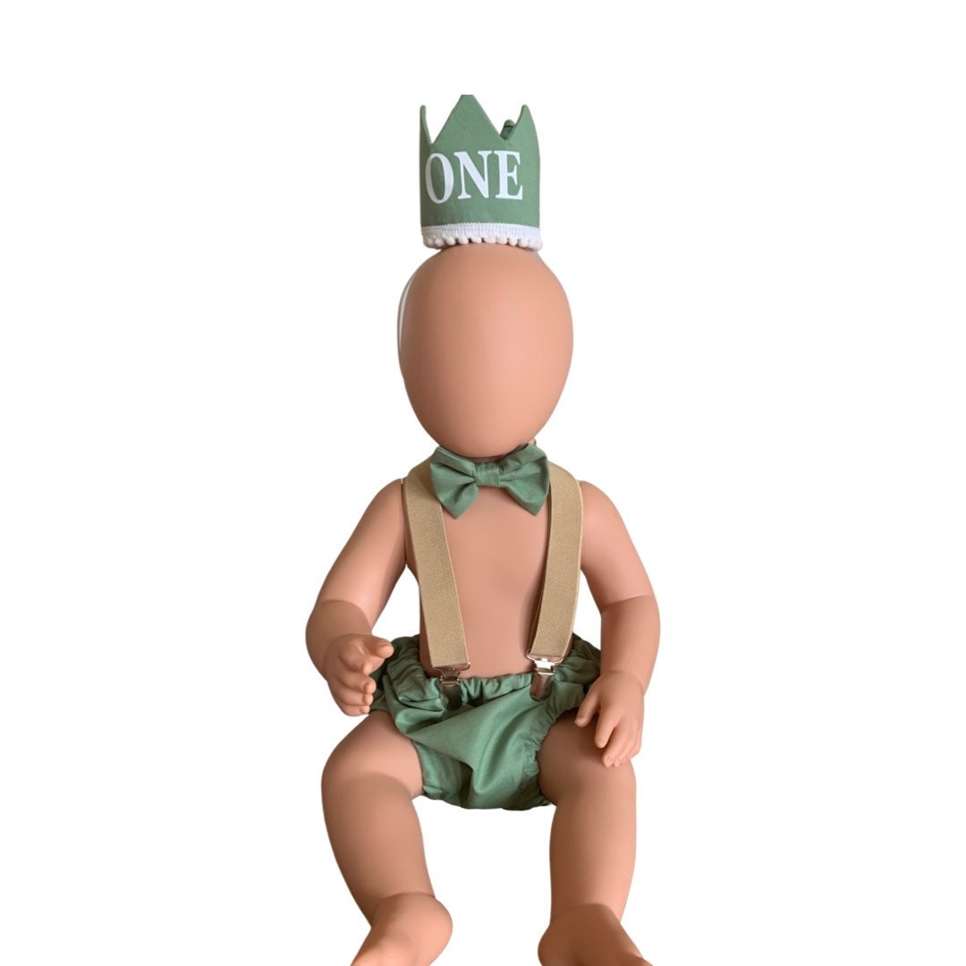Customized bloomer cake smash outfit boy, 1st birthday outfit boy, cake smash boy olive, 1st birthday hat baby sage, smash cake boy, olive