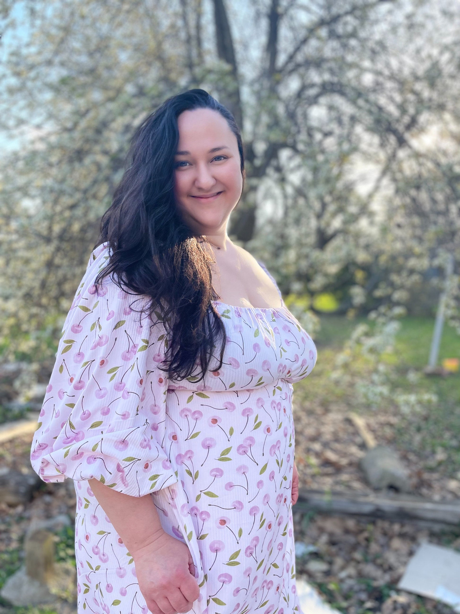 Elena puff sleeve midi, floor length dress, bridgerton inspired dress, off shoulder dress, regency, empire waist dress, maternity, cherry