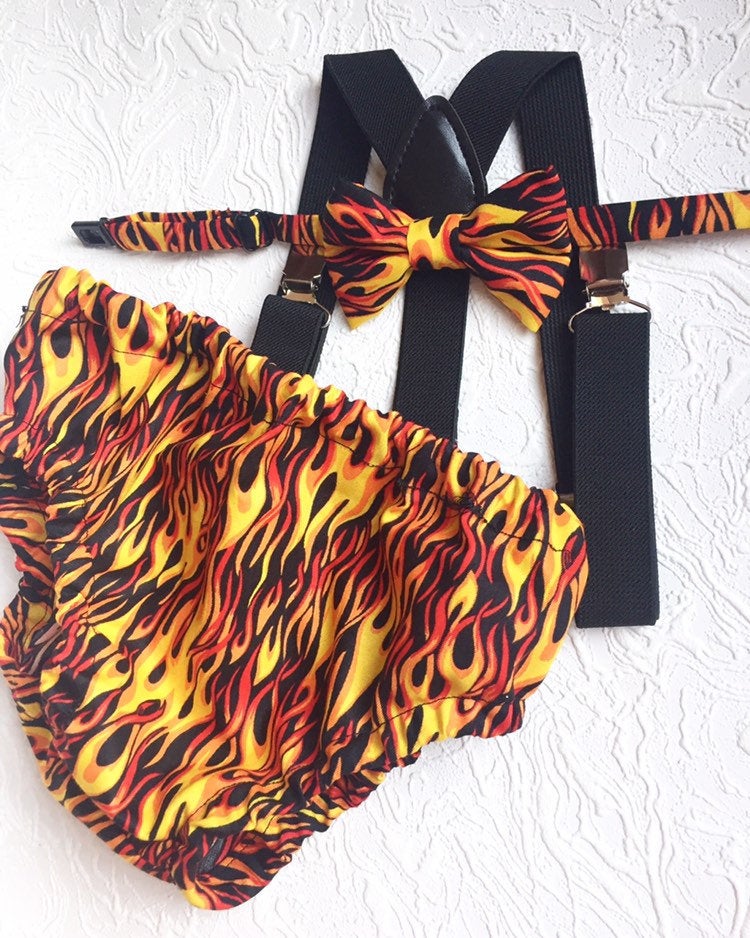 3 piece baby boy Cake Smash set: suspenders, bow tie and bloomers