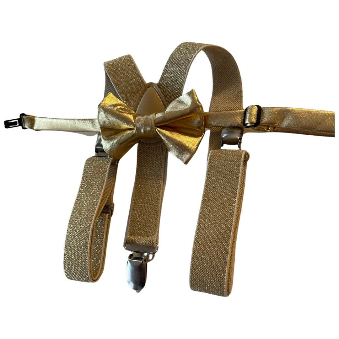 Gold Suspenders and foil gold bow tie- Ready to Ship!
