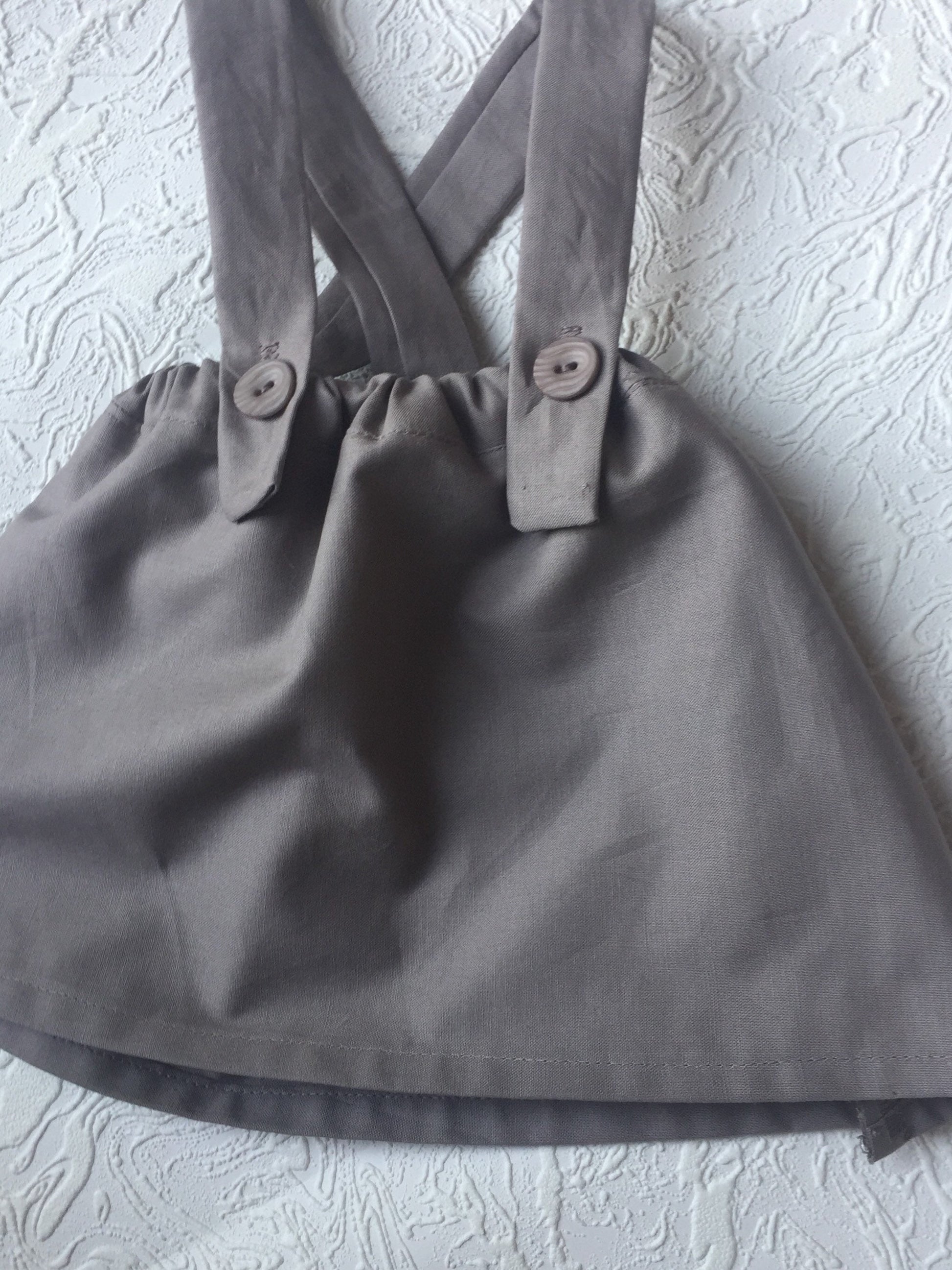 This fall "School "'skirt is perfect for an outdoor back to school photoshoot.The skirt is made of quilted cotton, with button suspenders. This skirt is knee length.