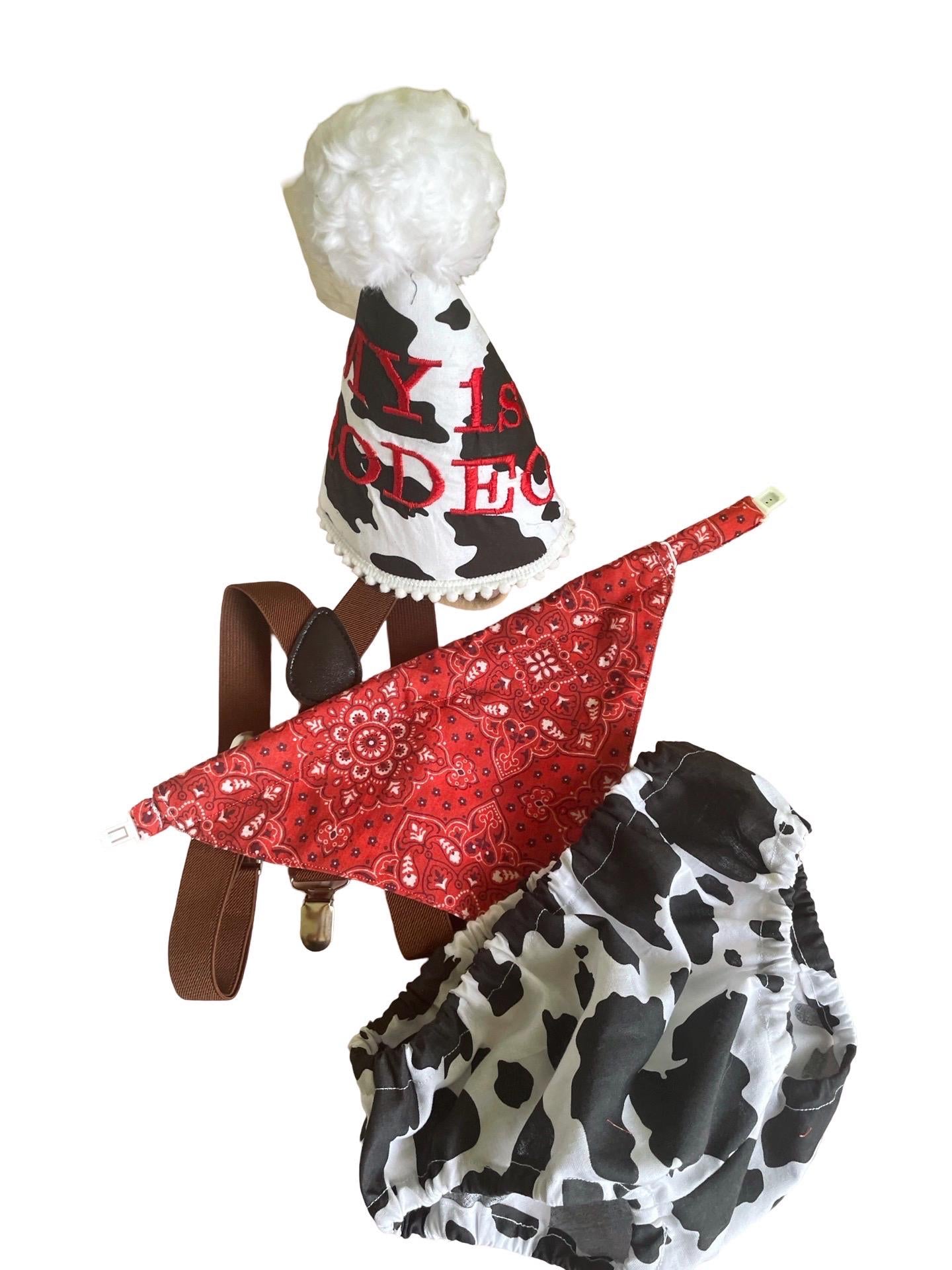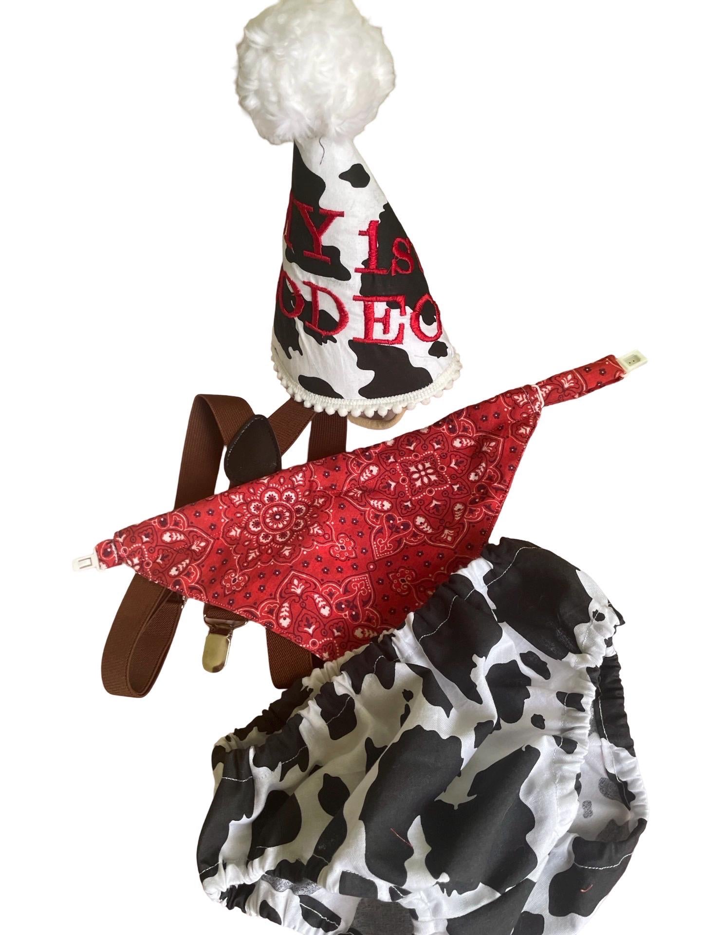 My First Rodeo, Wild One, First Birthday Outfit, Cowboy Party hat embroidered, Cake Smash Photoshoot, Western Country 1st Baby Boy Bloomer