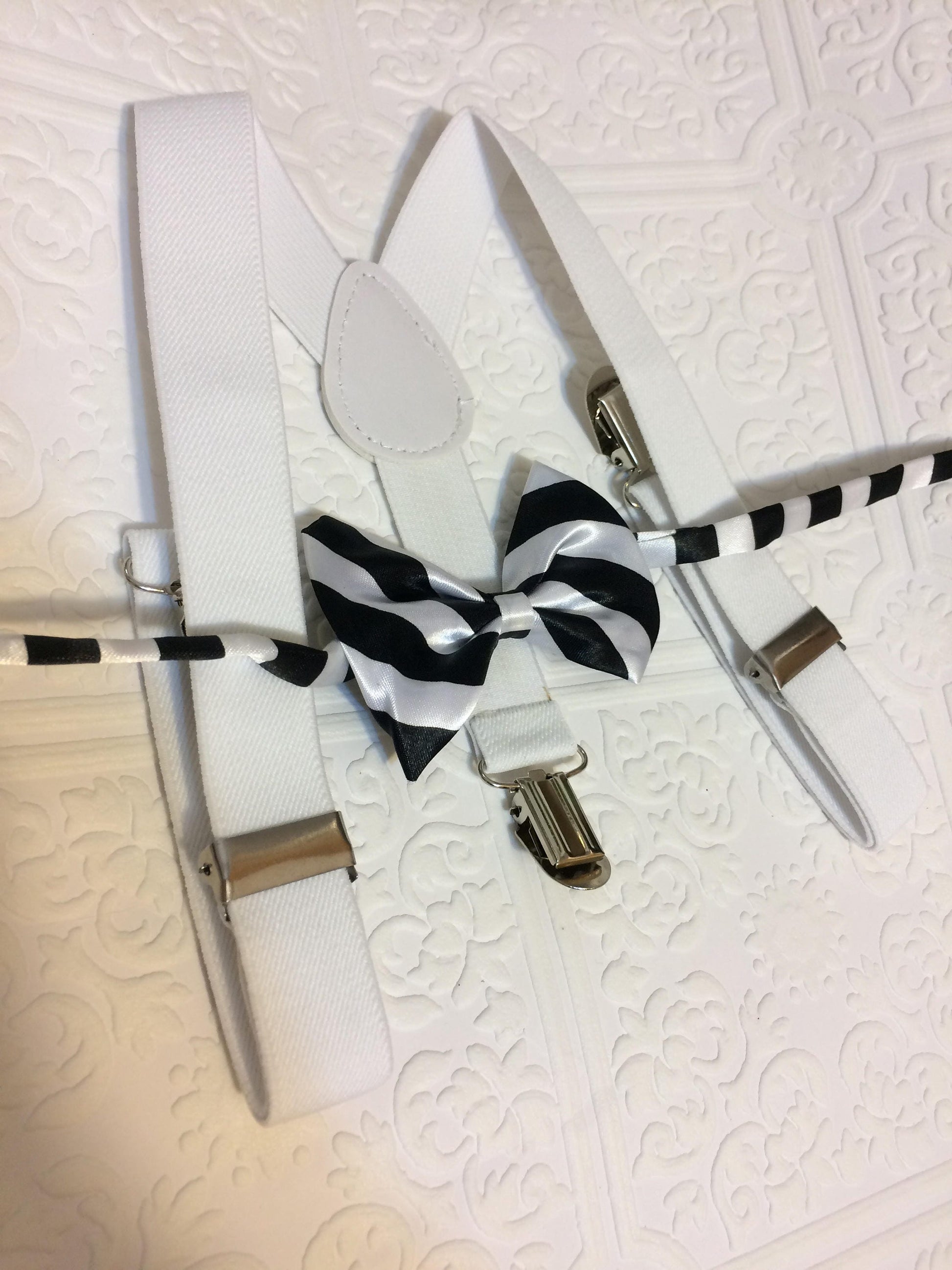 Classic white Suspenders and fun swirly bow tie- Ready to Ship!