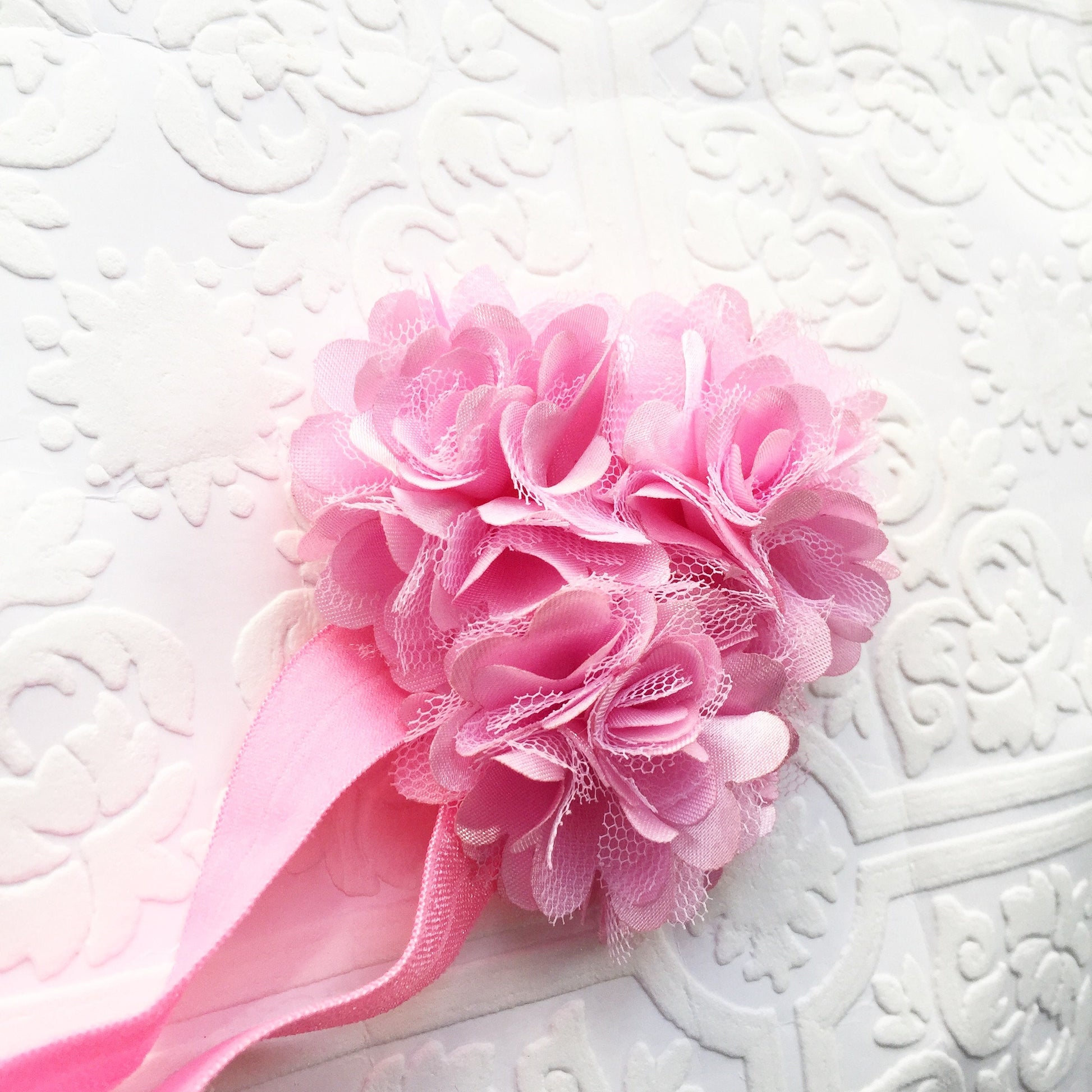 pink flower headband, stretchy headband, baby headband, preterm baby headband, medium flower headband, birthday headband, chic baby headband