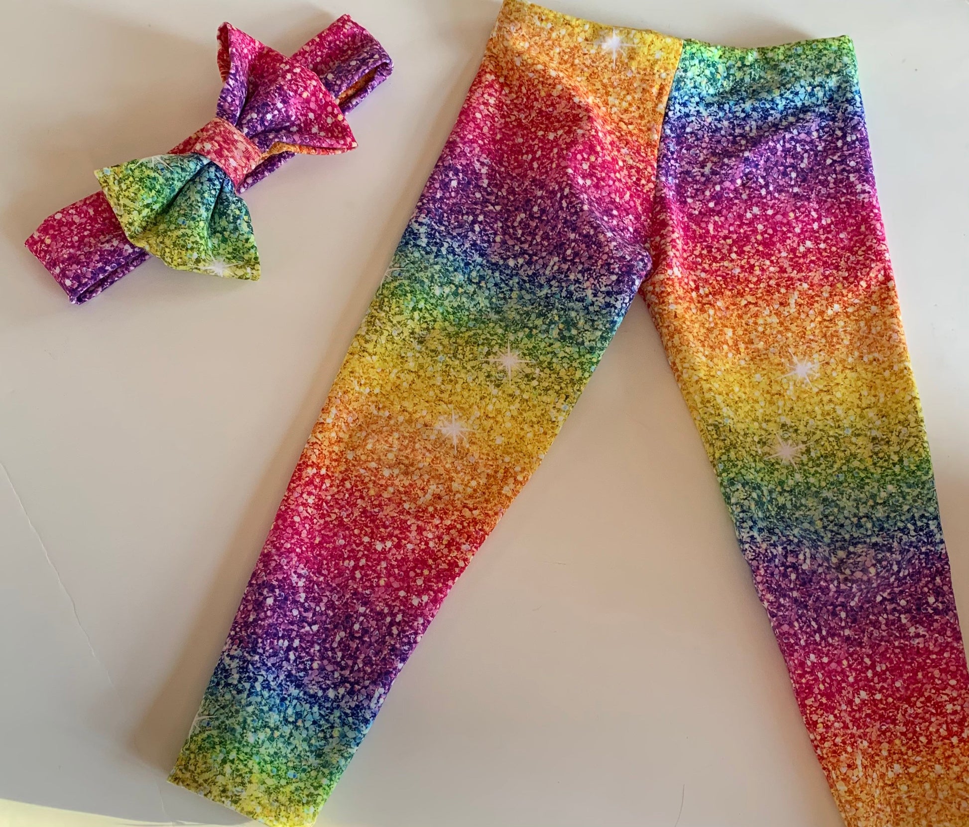 Our adorable baby bow “rainbow” headband and leggings will keep your baby in style for her first photoshoot and will keep her comfortable! The bow and leggings are made of 95% cotton and 5% Lycra-ideal for indoors/photoshoots/outdoor fun. Perfect for your babies first birthday.